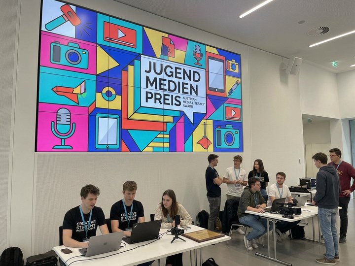 Entwickelt und produziert wurde „X hoch 3“ von elf Schülerinnen und Schülern der „Medienschiene“ an der Linzer Europaschule (NMS), in der immer wieder Videoproduktion im Programm steht und die Kreativität der Schülerinnen und Schüler ordentlich gefordert und damit auch gefördert wird. Videos werden nicht nur konzipiert und aufgenommen, sondern auch geschnitten, wofür den SchülerInnen fünf Schnittcomputer mit dem professionellen Programm Final Cut zur Verfügung stehen. Denn zur Ausbildung gehört auch das Schneiden und Verändern von Filmen sowie die Fertigkeit, Filme auf deren Effekte, Wirkungen und Ausdruck hin zu beurteilen. – Wie man spezielle Effekte und Wirkungen erzeugen kann, haben sie mit ihrem preisgekrönten Werk bravourös vorgezeigt!