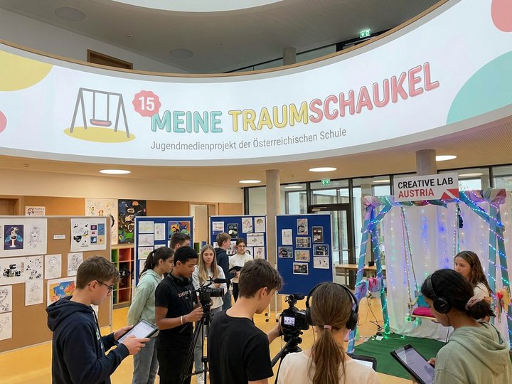 Die analogen Traumwelten wurden anschließend digitalisiert, damit sie mittels VR-Brille betrachtet werden konnten. Am Ende des Projekts stand ein Ausflug auf den Spielplatz auf dem Programm, wo die jungen Schöpferinnen und Schöpfer ihre Traumwelten auf der Schaukel ausprobierten.