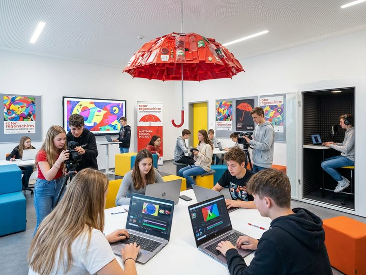Red Umbrella erzählt die Geschichte einer Schülerin, die den Mut aufbringt ihren eigenen Weg zu gehen. Als sich in der Klasse herumspricht, dass sie an einem Poetry-Slam teilnehmen möchte, wird sie von ihren Mitschülerinnen und Mitschülern schief angeschaut, belächelt, ja sogar angefeindet. Unangenehme Kommentare führen dazu, dass die Schülerin beginnt an sich selbst zu zweifeln, doch durch eine entscheidende Begegnung findet sie zurück zu sich und damit zu neuer Kraft.