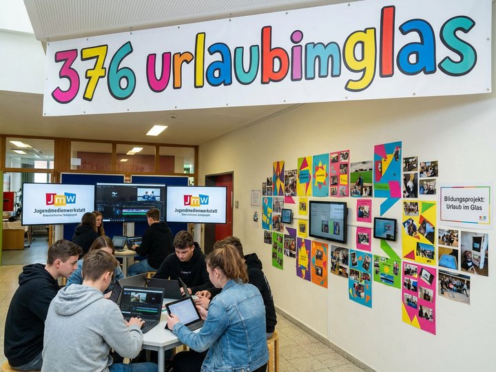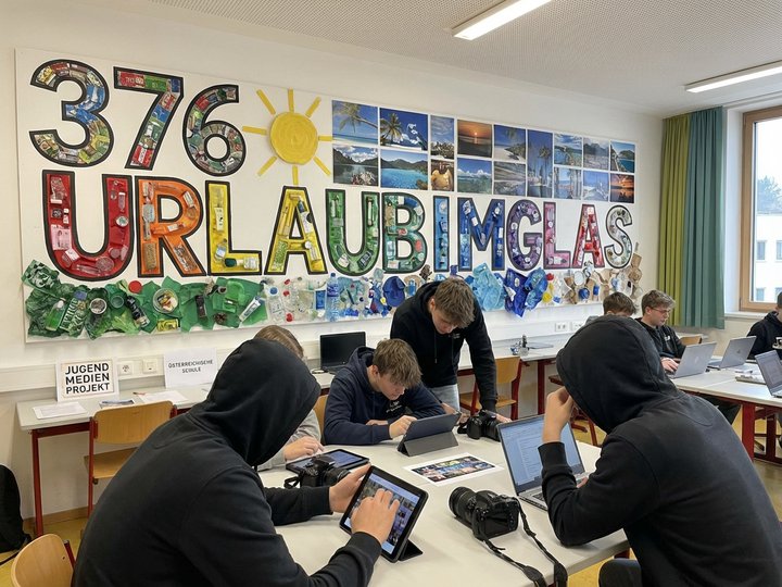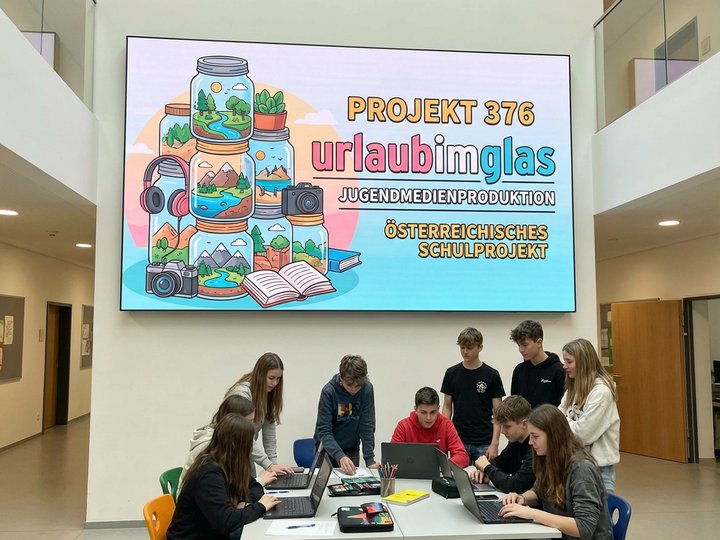 „Urlaub im Glas“ ist eine durch und durch eigenständige Produktion, realisiert mit der Unterstützung der Ortweinschule Graz. Dabei haben sich die Schüler detailliert mit den technischen Voraussetzungen eines One-Shots unter Wasser auseinandergesetzt und die darin implizierten Herausforderungen bravourös gemeistert.