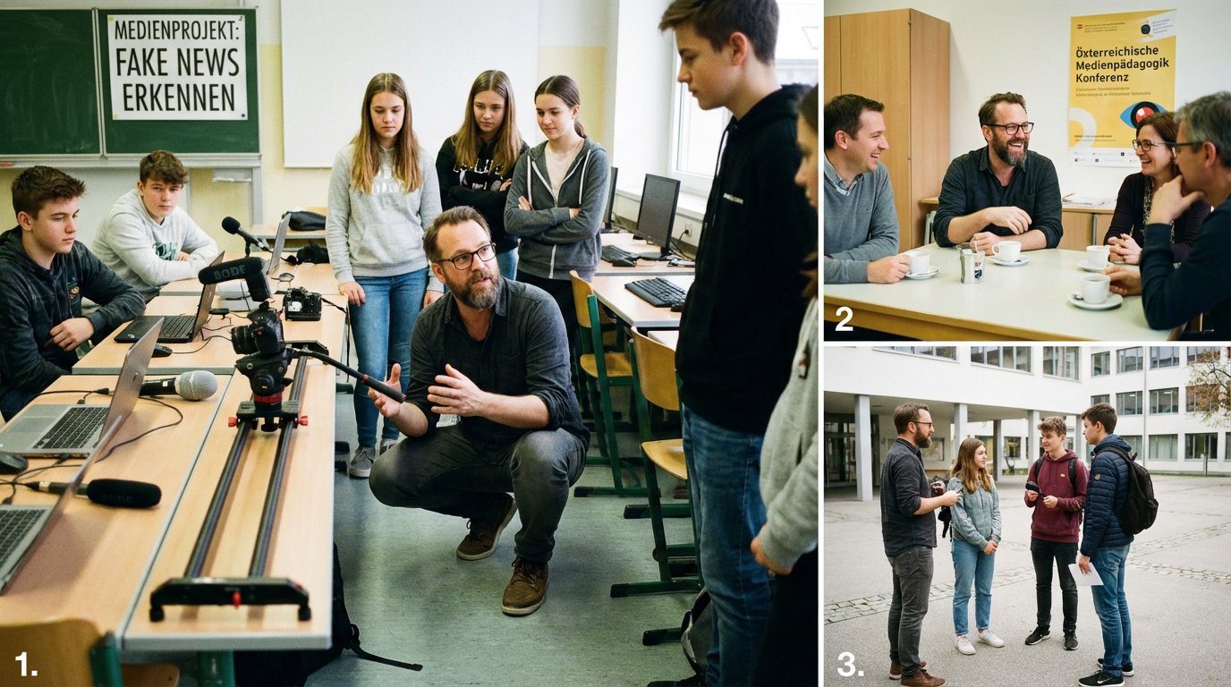 Simon Mörwald: „Ganz allgemein müssen Schülerinnen und Schüler fähig sein, Medien kritisch zu betrachten und zu konsumieren, damit sie weniger anfällig für Manipulationen jeder Art werden. Im Idealfall lernen sie auch, Medien produktiv und kreativ zu nutzen, für sich selbst und zum Wohle anderer.