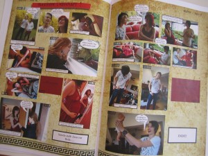 – Die Zeitschrift „Bravos“ umfasst: Society-Berichte, Comics, eine Foto-Lovestory, einen Persönlichkeitstest, als Beilage eine Musik-CD mit selbst aufgenommenem Rap samt Fanposter, mythische Gedichte, Rezepte und vieles mehr.